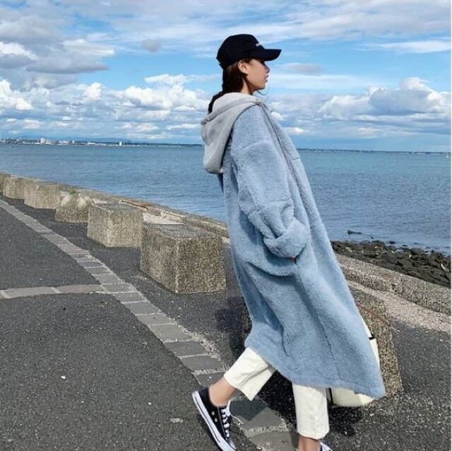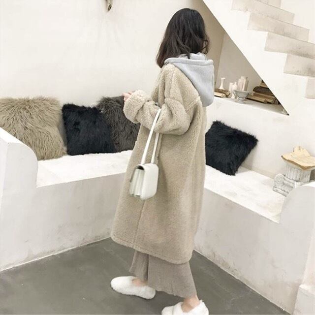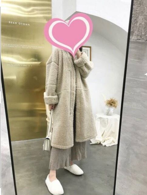 ナチュラルカラーが可愛いロング丈のボアコートです。
