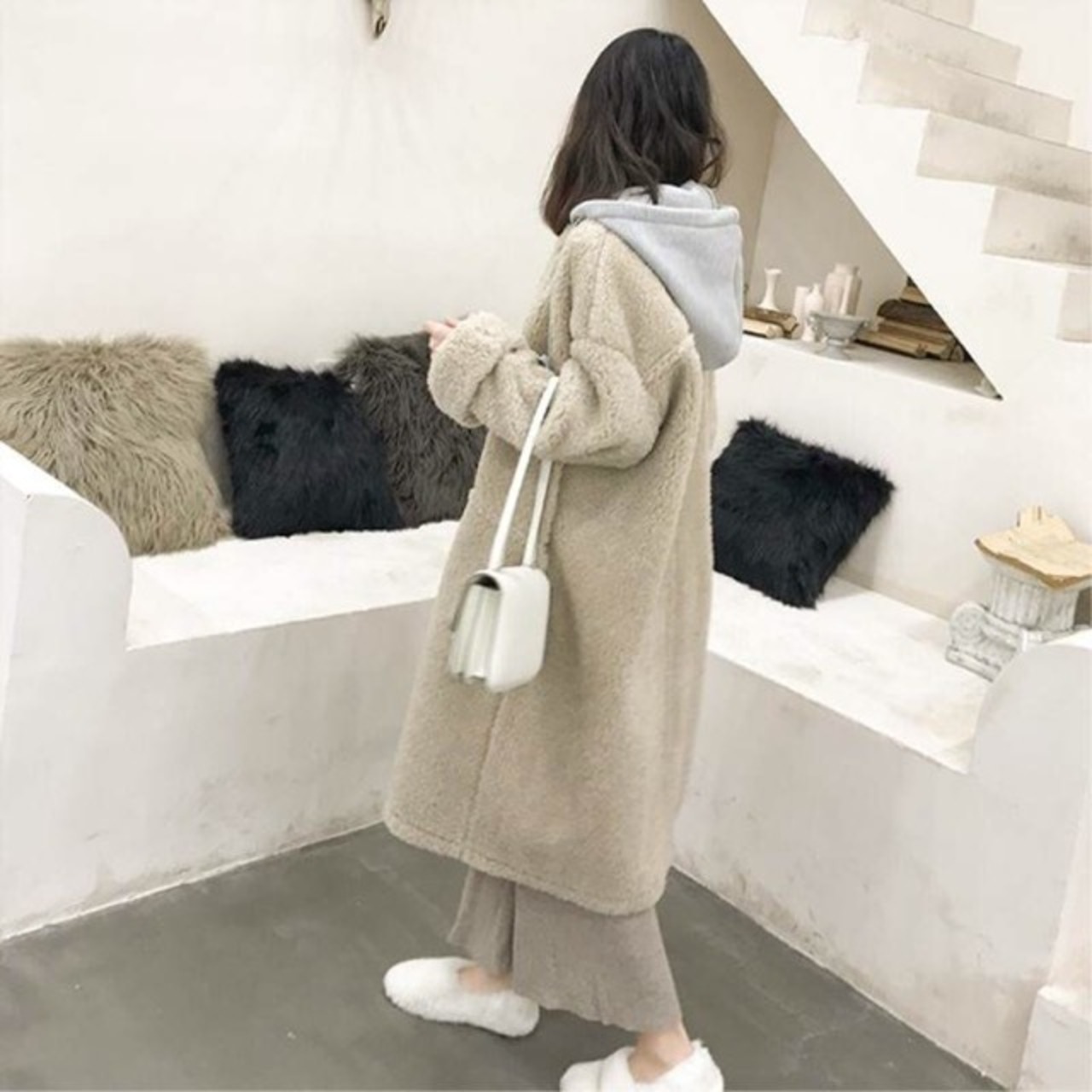 ふんわりした生地が優しく体を包みこんでくれるのでまるで毛布を着ているかのよう。