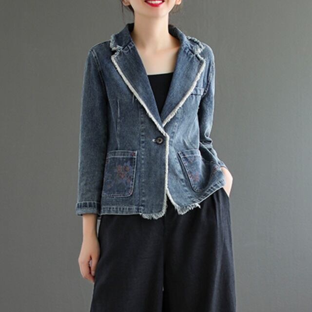 大きな襟がワンポイントのカジュアルデニムジャケット♪
