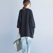 ラウンドネックで首回りをすっきりデザインした、ゆったりかわいいキルティングコート♪