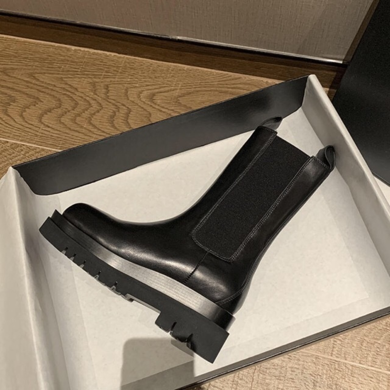 どんな服とも合わせやすいシンプルデザインのブーツです。