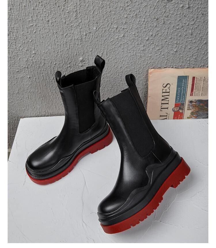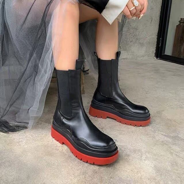 《再入荷》レディース ブーツ ミディ丈 カラフルソール 厚底 メンズライク 個性的 軽い 着脱カンタン 2020秋 2020冬 新着 トレ定