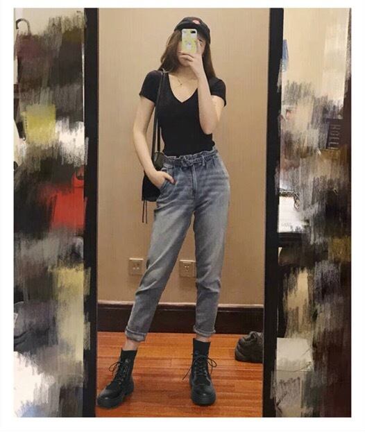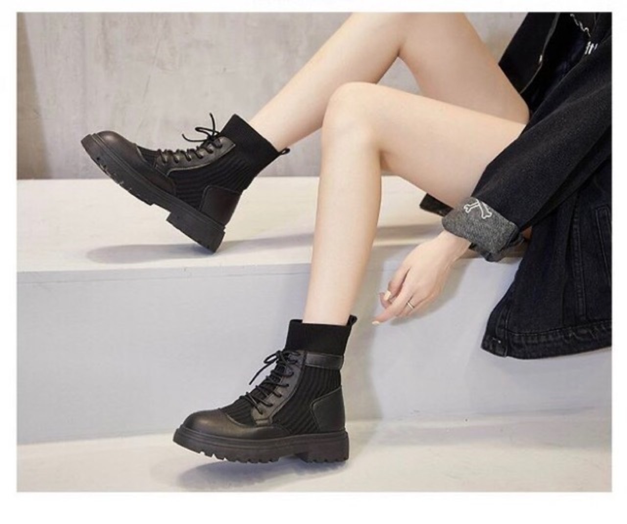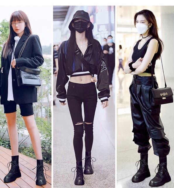 黒一色でまとめたショート丈ブーツはズボンを選ぶ事なくパンツはもちろんスカートと合わせてもGood。