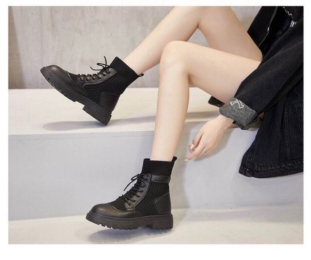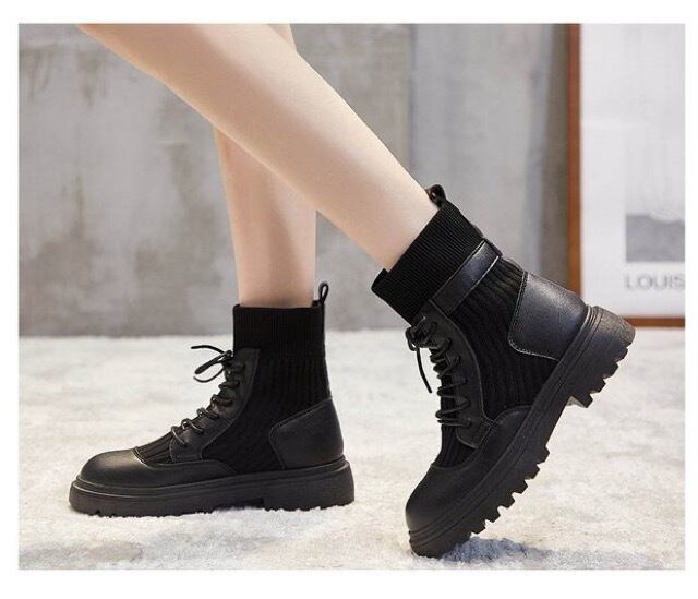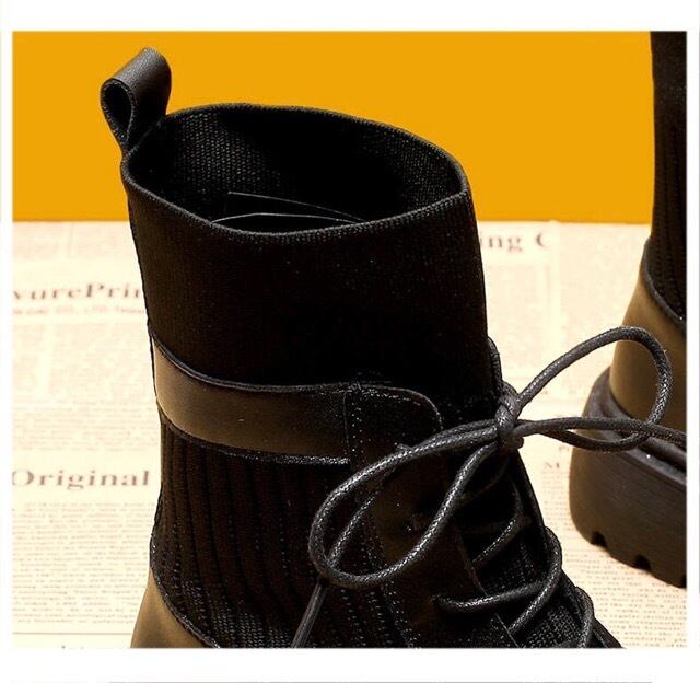 レディース ブーツ レースアップブーツ ショートブーツ レイヤードデザイン リブソックス 裏起毛 細見え 2020秋 2020冬 新着 トレ定