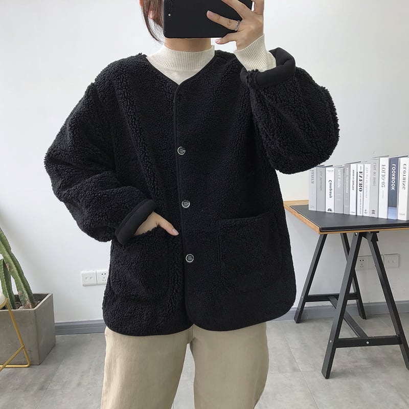 全4色 レディース アウター コート ジャケット ボア テディベア ノーカラー もこもこ あったか 無地 羽織 オーバーサイズ ショート丈 防寒 シンプル フェミニン ナチュラル きれいめ 大人カジュアル お出かけ デイリー 秋 冬