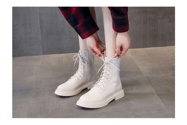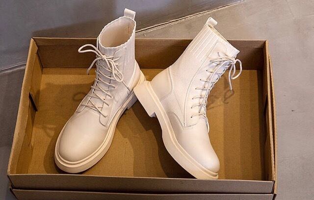 ブラックとホワイトの2色からなるブーツはシンプルデザインでどんなコーデとも相性バツグン。