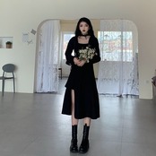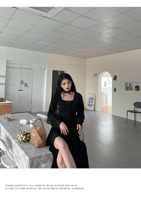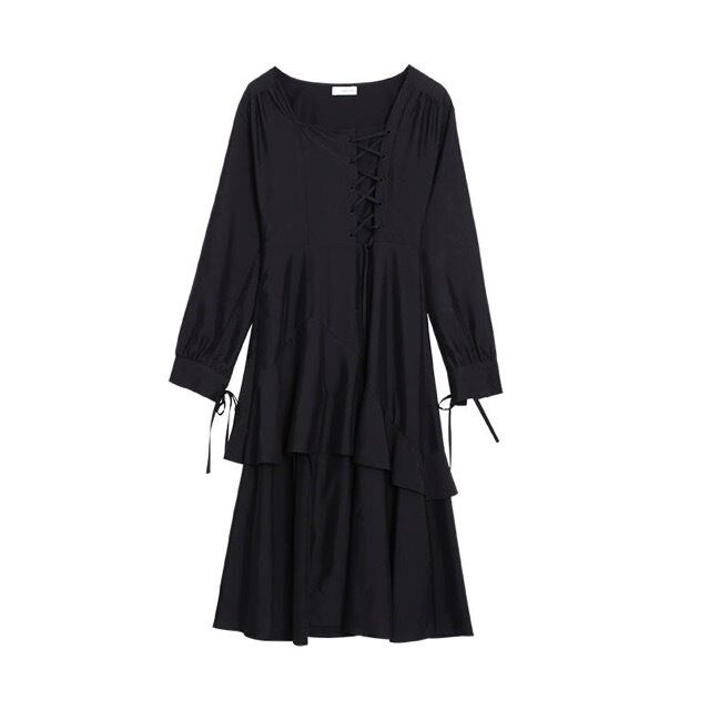 モノトーンカラーがシックに映えるスクエアネックのワンピースです。