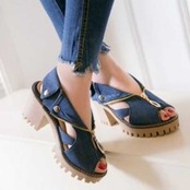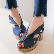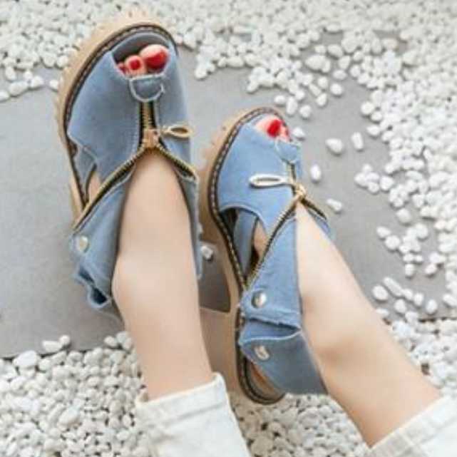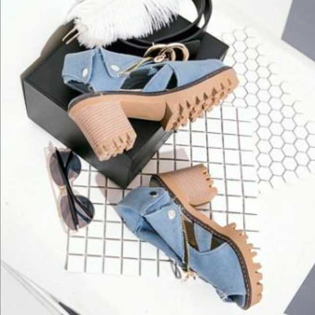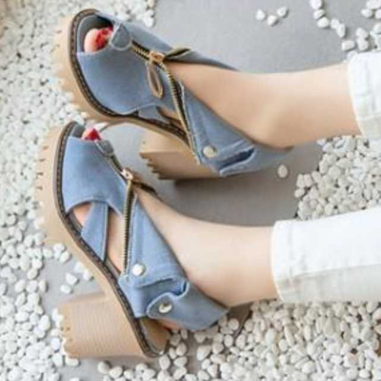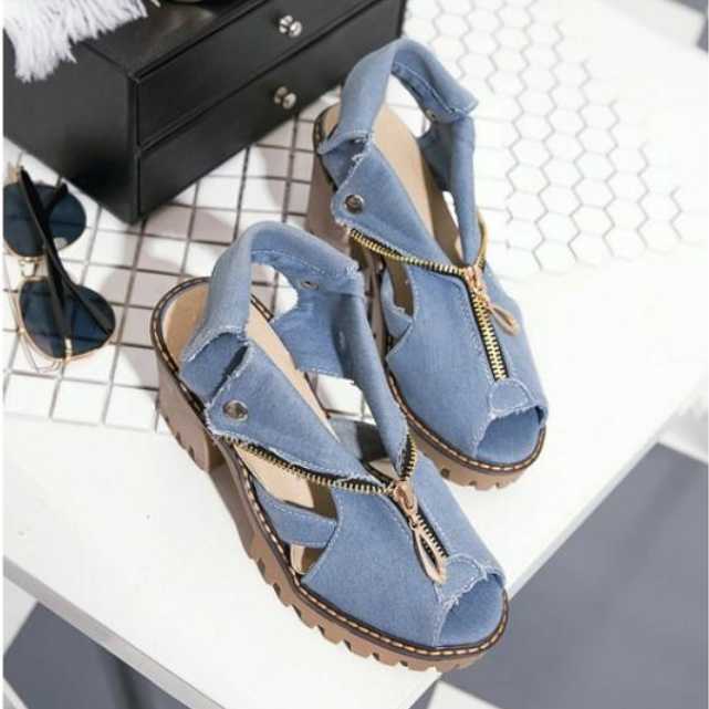 全2色 デニムサンダル レディース 大きいサイズ サンダル デニム生地 ミドルヒール ファスナー デニムヒール ヒール クール カジュアル サンダル