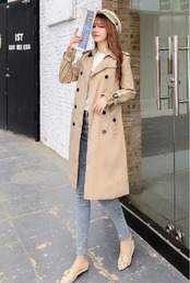 カジュアルにもきれいめにも、幅広く使えるベーシックなトレンチコートです。