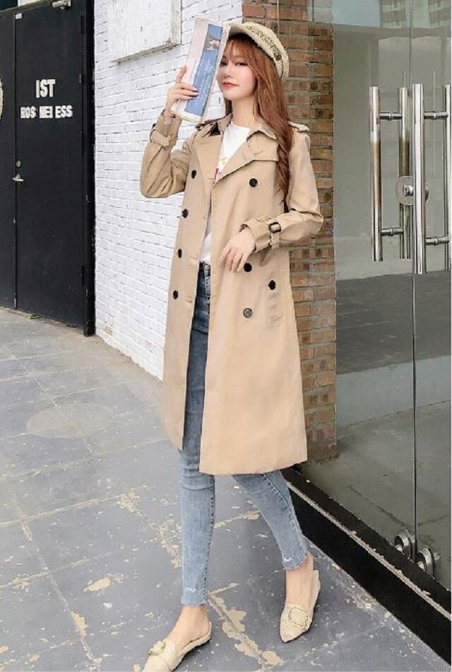 小さいサイズ 大きいサイズ コート トレンチコート ボタン ベーシック きれいめ 通勤 定番 ミドル丈 ひざ丈 春 秋トレ定 かわ小 かわ大