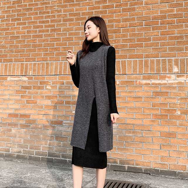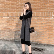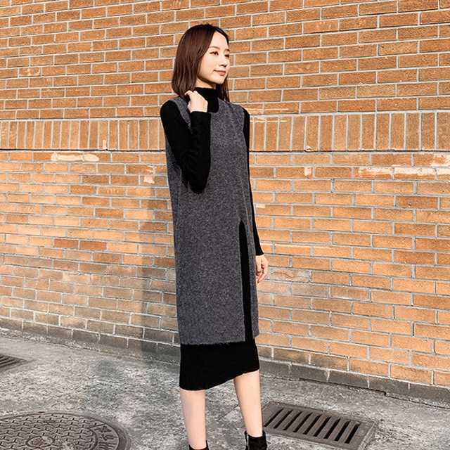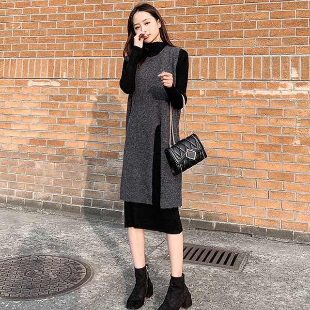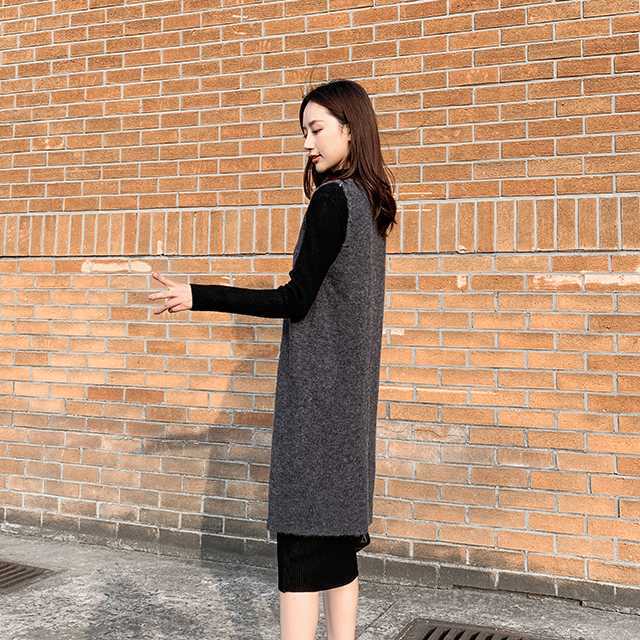 《入荷待ち》大きいサイズ ニット ワンピース レイヤード レディース ロング丈 長袖 ニットワンピース ニット クルーネック タイトスカート ミモレ丈 秋 冬 通勤服 カジュアル 普段着 着回し シンプル トレンド キュート きれいめ セットアップ トレ定 かわ大