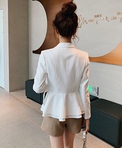 《入荷待ち》大きいサイズ レディース スーツ テーラード ウエスト絞り 無地 シンプル オフィス 大人可愛い きれいめ アウター ジャケット かわ大 トレ定
