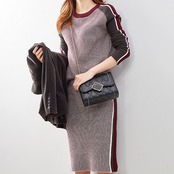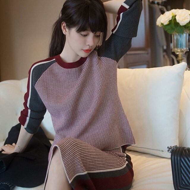 《入荷待ち》 ニット セットアップ ワンピース風 レディース ロング丈スカート トップス 長袖 2点セット ニットセーター ラウンドネック タイトスカート ロング丈 秋 冬 通勤服 カジュアル 普段着 着回し シンプル トレンド セットアップ トレ定