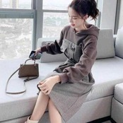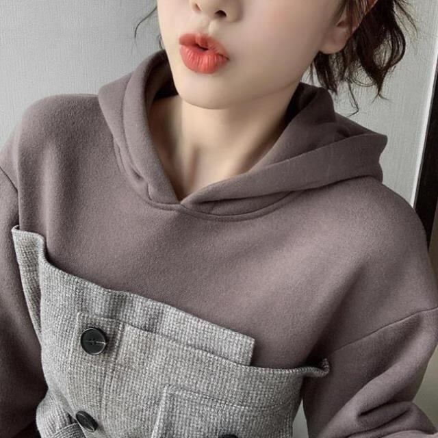 《再入荷》 パーカーワンピース レディース レイヤード風 パーカー ワンピース 体型カバー 重ね着風 ウエストマーク 着痩せ トレンド キュート カジュアル きれいめ ひざ丈 ミモレ丈 秋 冬 トレ定
