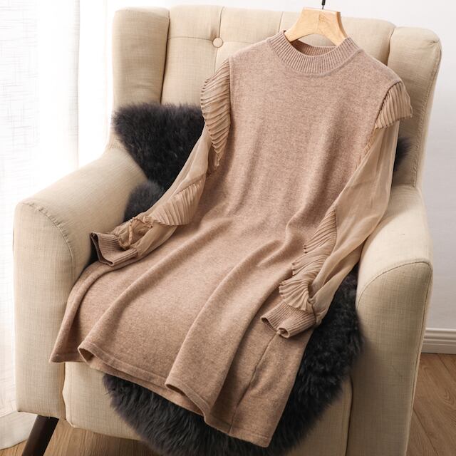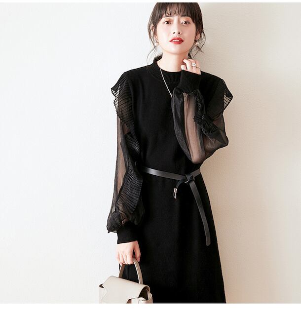 《入荷待ち》 レディース パーティー ウール エレガント スリーブステッチ ヒザ丈 レトロ モダン 大人可愛い ガーリー ドレス