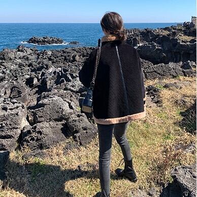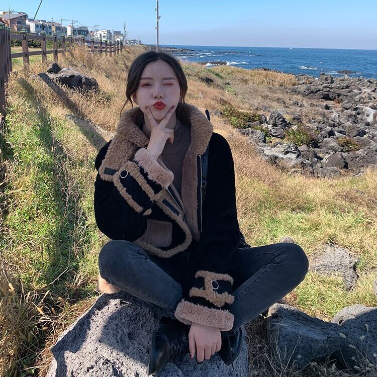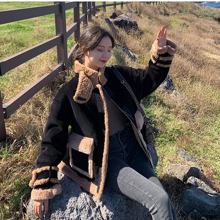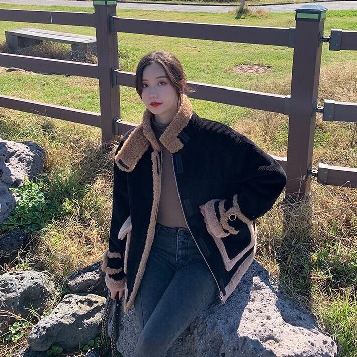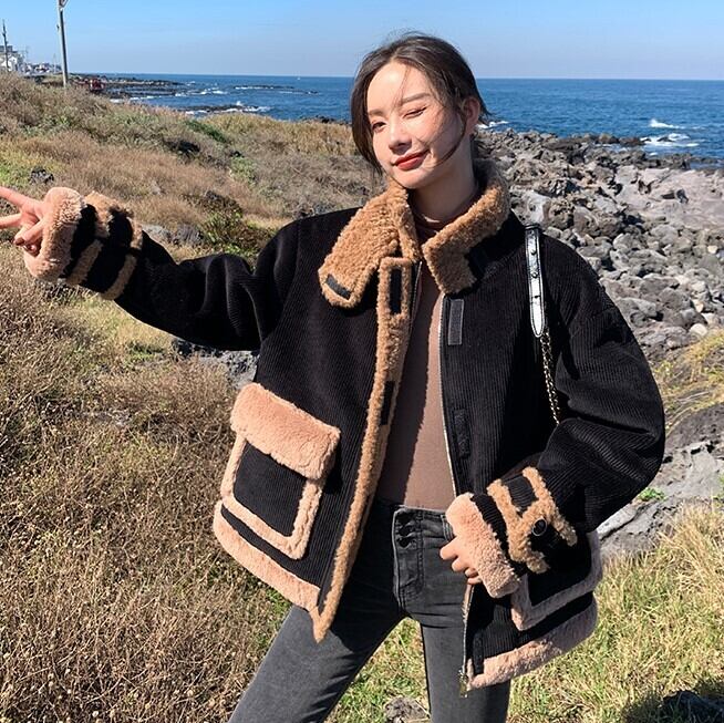 コーデュロイとボアの組み合わせが大人可愛いショートコート。