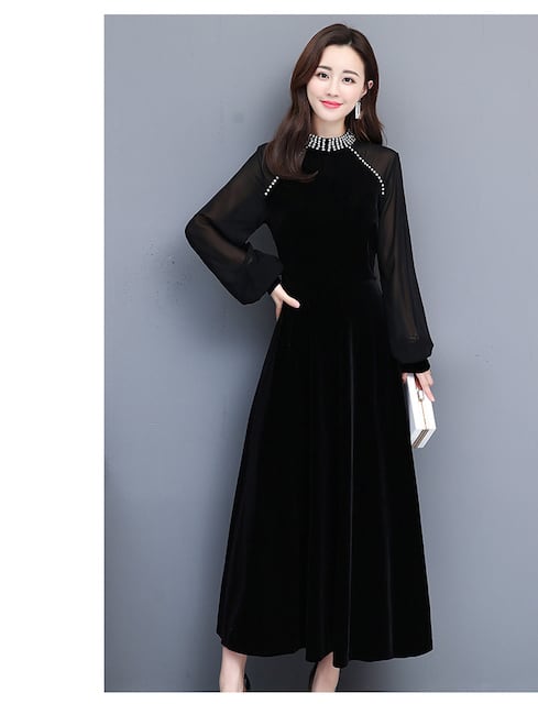 《入荷待ち》 大きいサイズ レディース パーティー ベルベット 長袖 エレガント ロング丈 レトロ モダン 大人可愛い ガーリー ドレス かわ大