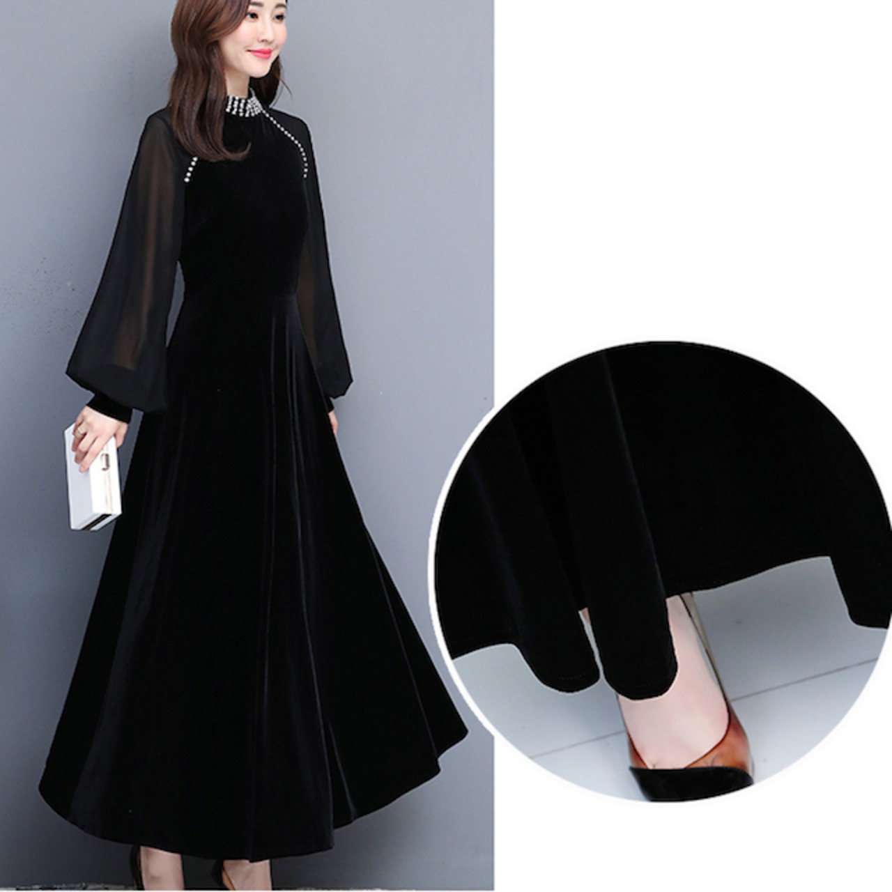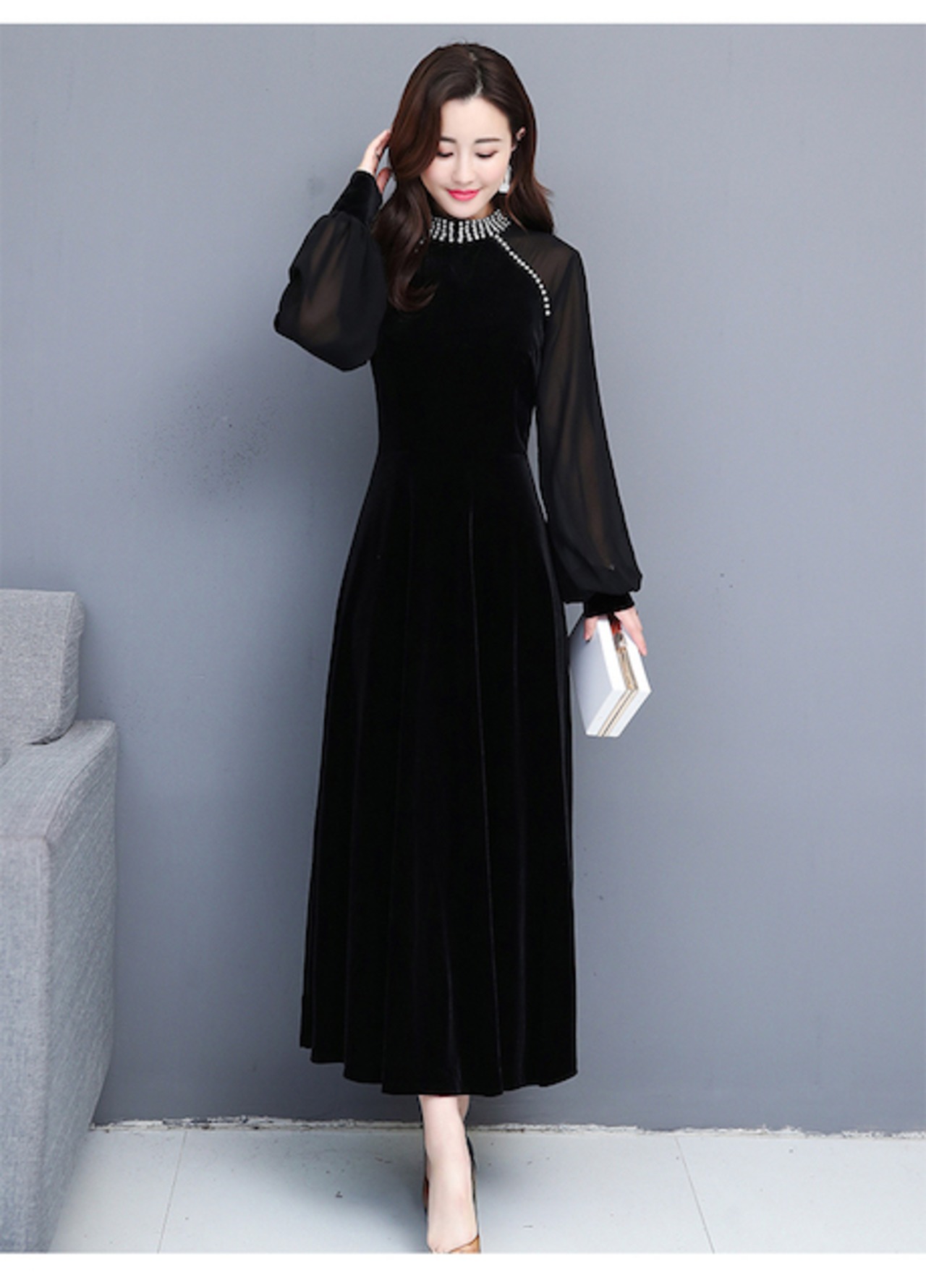 ベルベットのゴージャス感漂うロング丈ドレス。