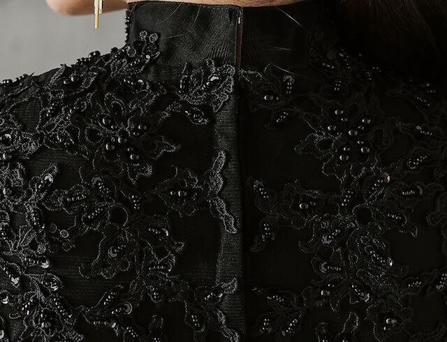 散りばめられたビジューと刺繍がエレガントなドレス。