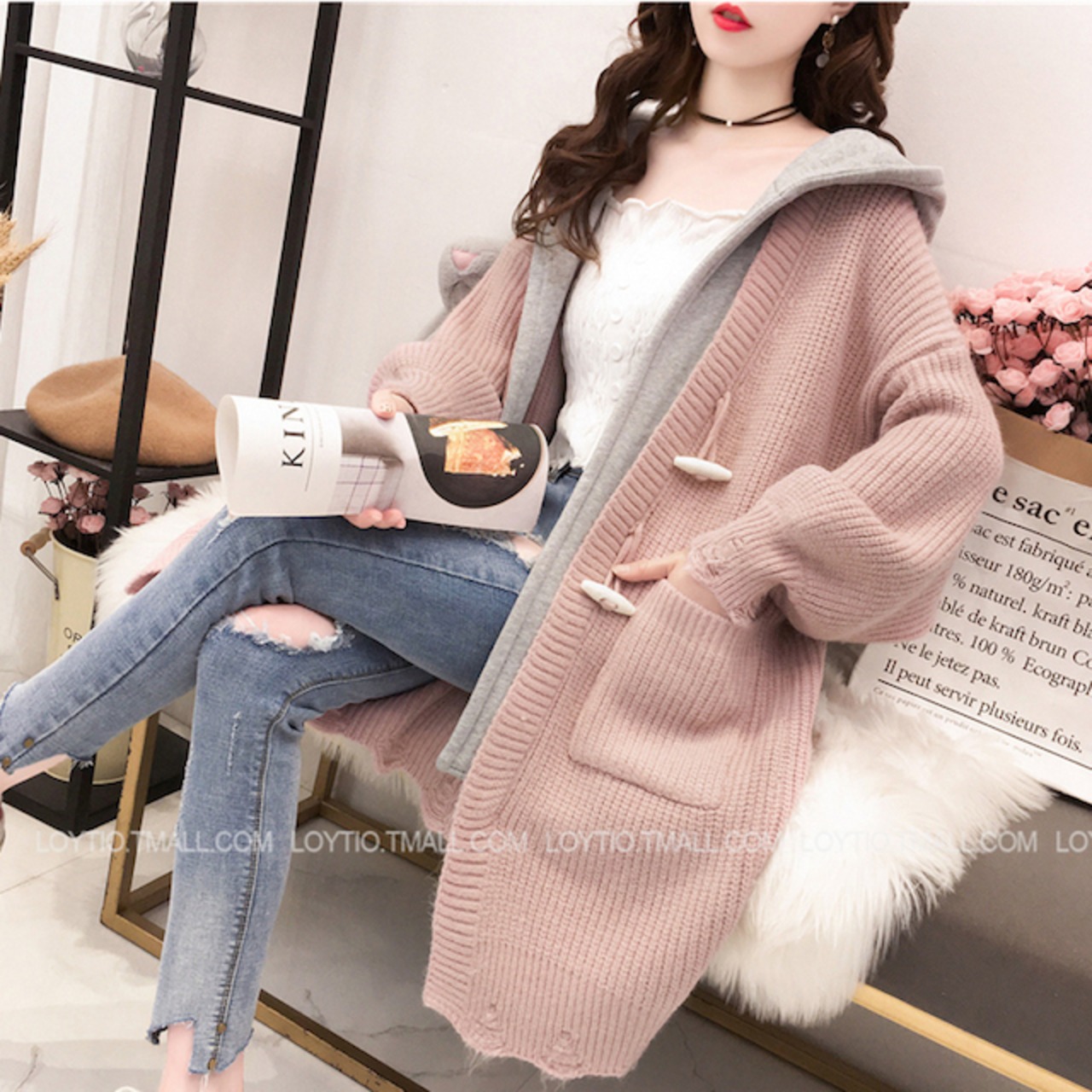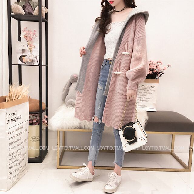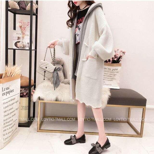 《入荷待ち》 全2色 レディース ニット カーディガン フード 長袖 ロング ダッフル あったか 大人可愛い ガーリー アウター