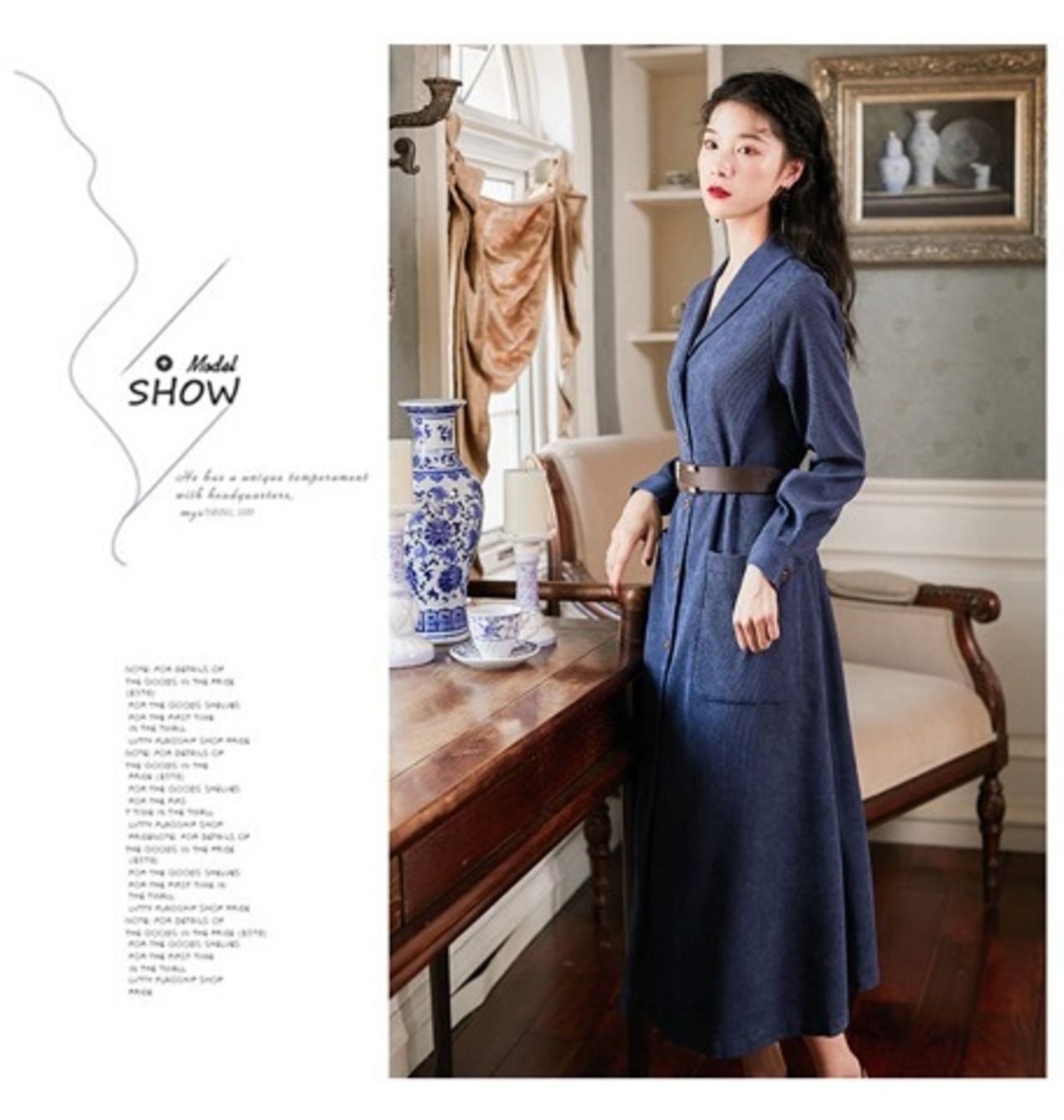 付属のベルトをウエストマークすると細見え効果がありスタイル良く見えこなれ感がUP。
