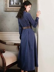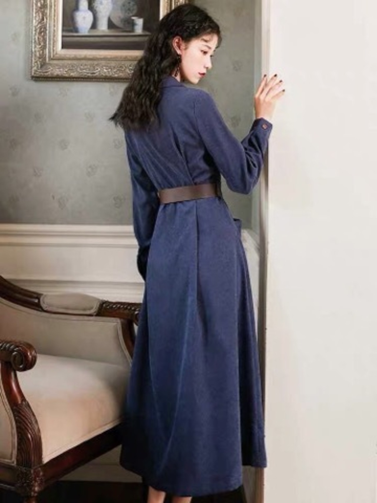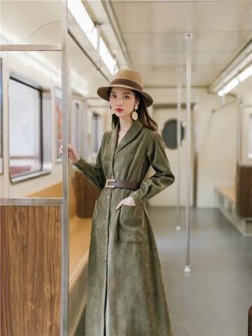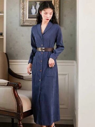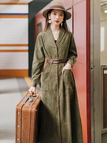 《再入荷》 レディース アウター くすみカラー カーキ ネイビー チェスターコート ガウン 大人可愛い シック マキシ丈 Vネック 人気 今季トレンド