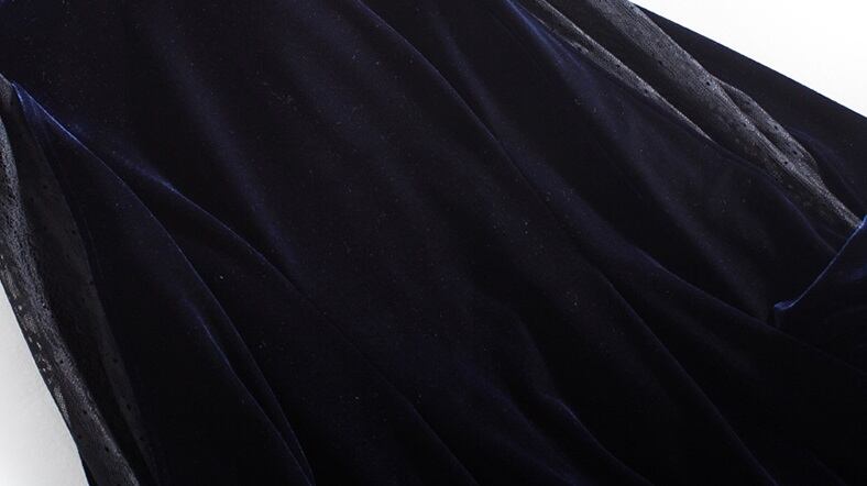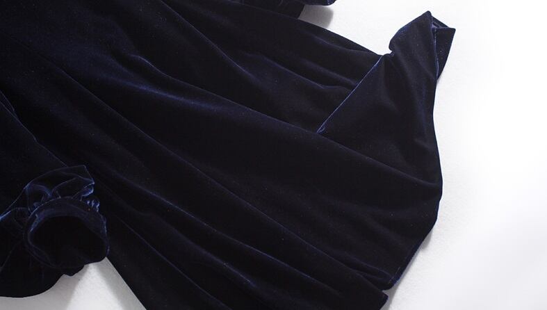 ベルベット素材の生地とシースルーの透け袖がエレガントなパーティードレス。