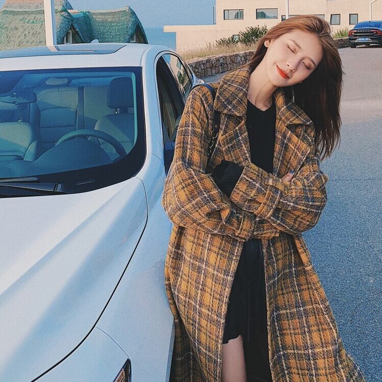 マスタードイエローのチェック柄が目を惹くチェスターコート。