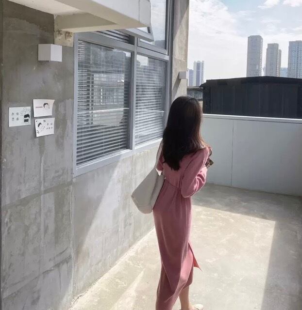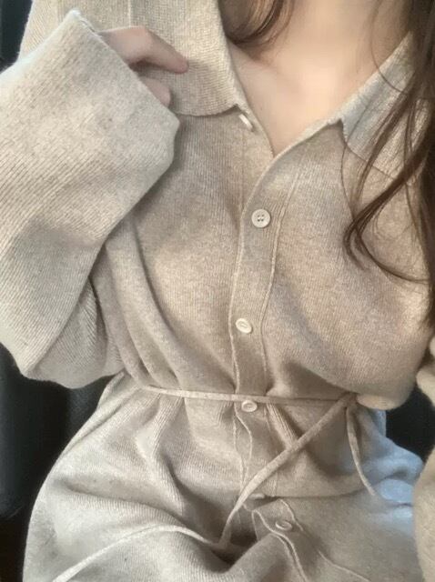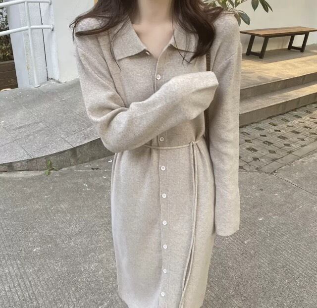 落ち着いた色が大人可愛いマキシ丈のニットワンです。