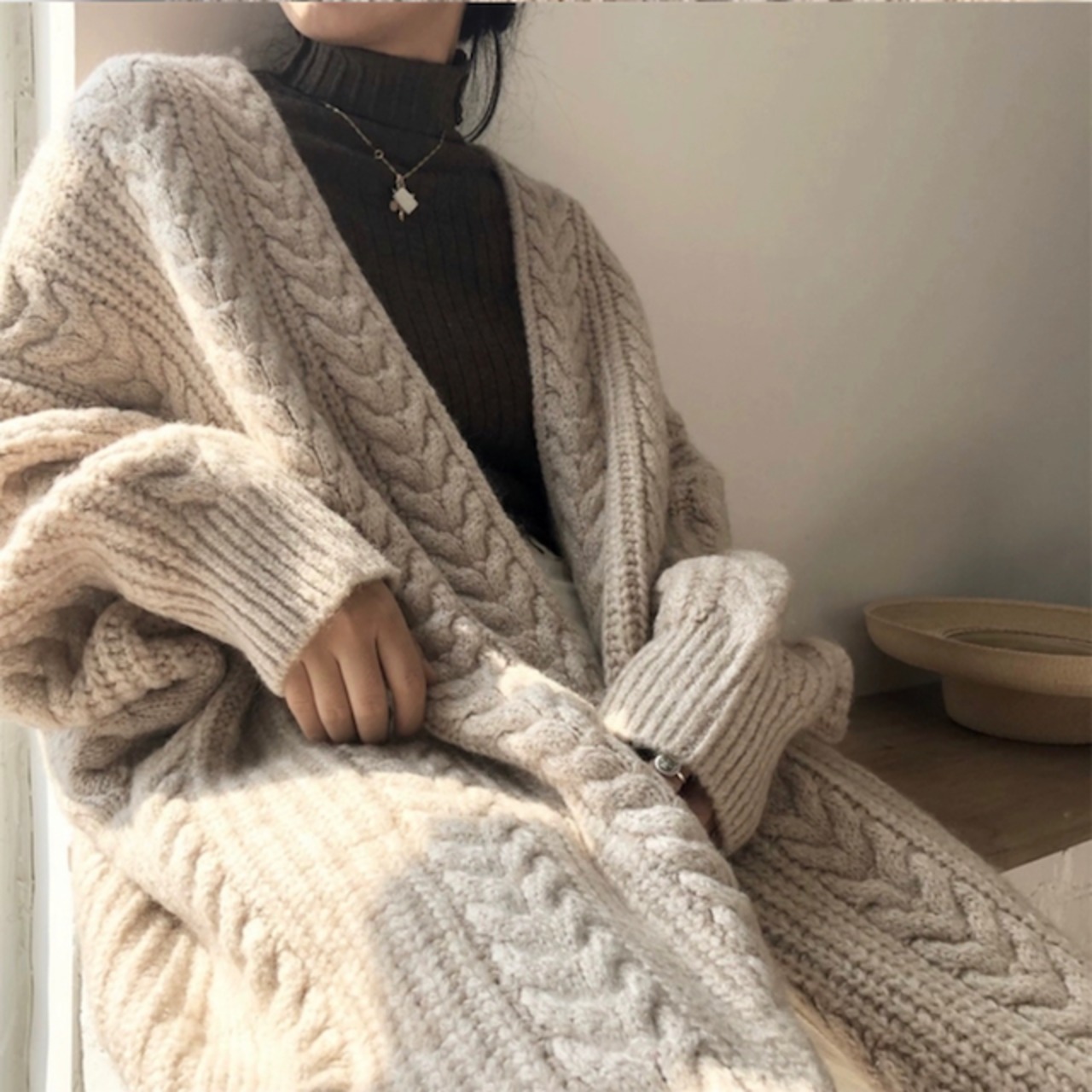 シンプルなケーブルがらののニットカーディガン!