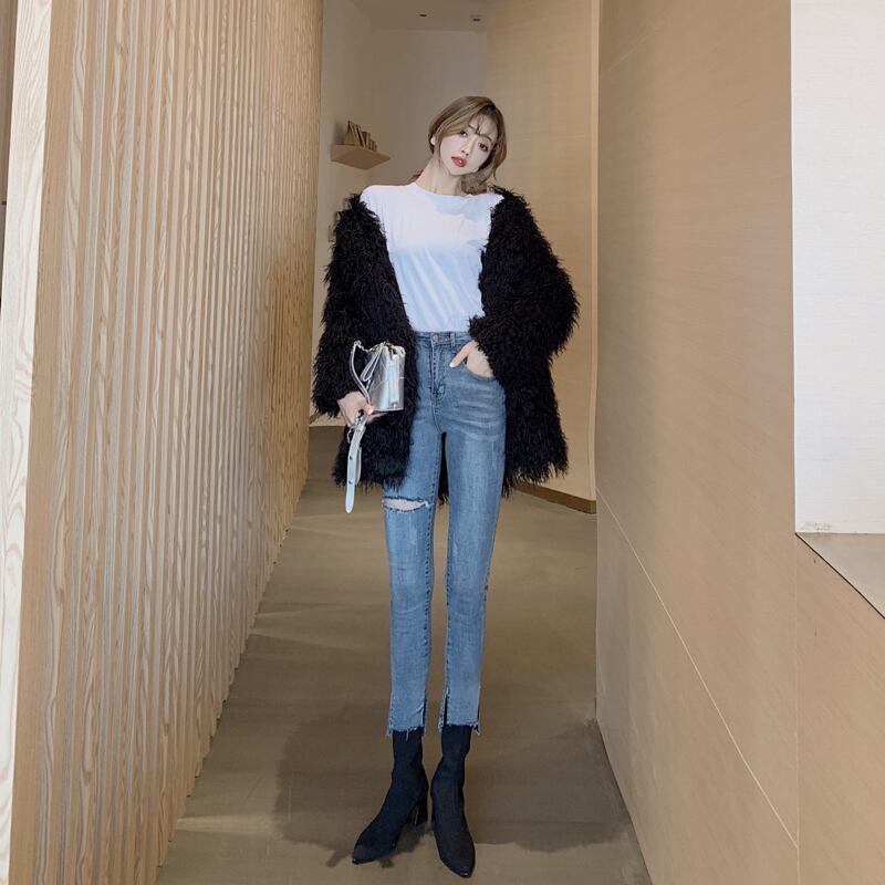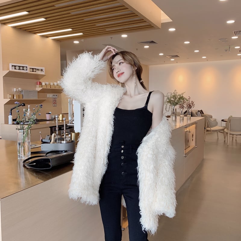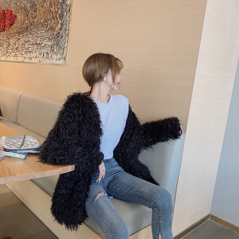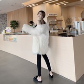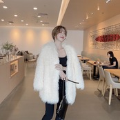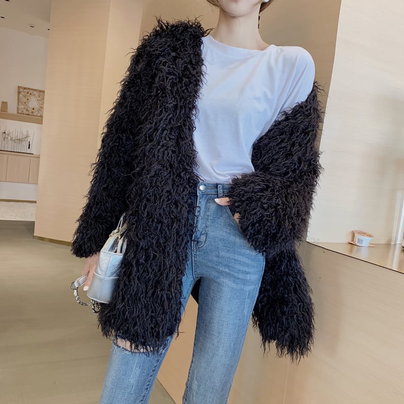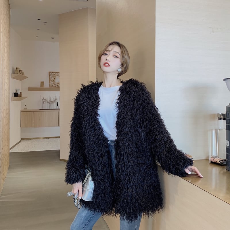 《入荷待ち》 大きいサイズ 小さいサイズ 全2色 レディース アウター ジャケット コート プードル ファー ノーカラー ミドル丈 もこもこ 羽織 オーバーサイズ きれいめ シンプル エレガント 大人可愛い デート お出かけ 冬 かわ大 かわ小