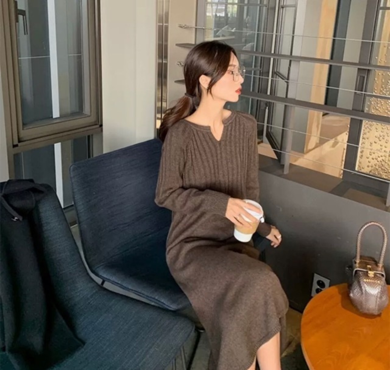 大きいサイズ ニット ワンピース 大人カラー シック シンプルデザイン Iライン トレ定