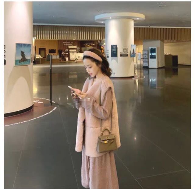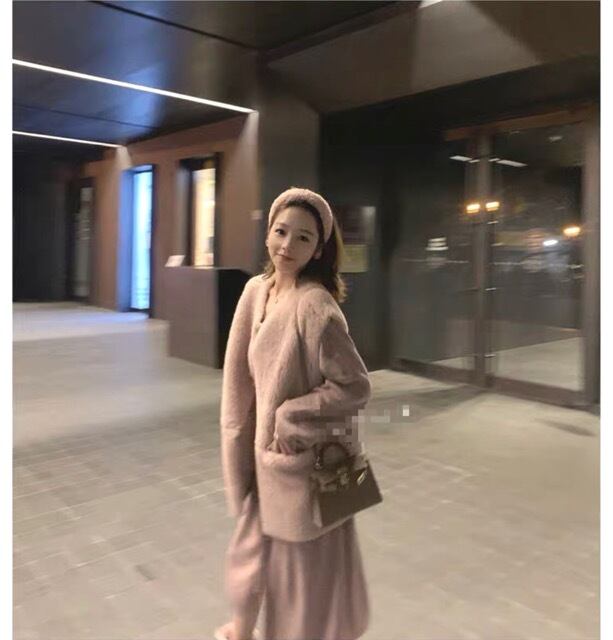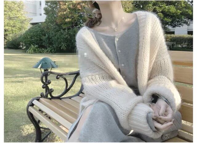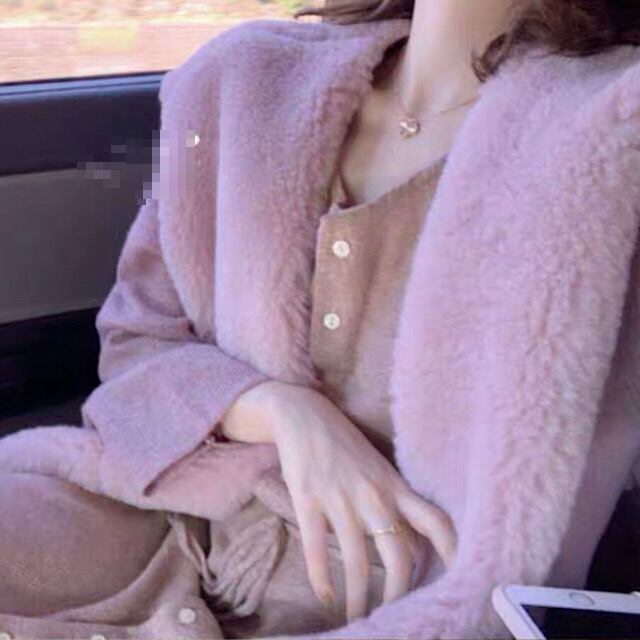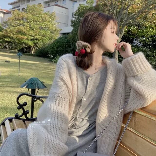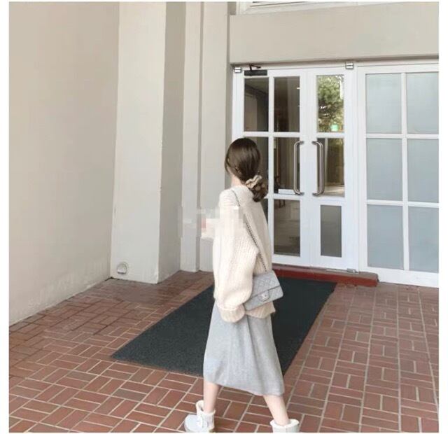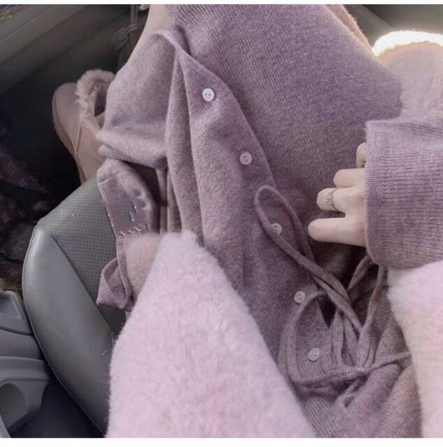 シンプルデザインなのでボア付きカーディガンやファーコートと合わせるとフェミニンさがアップ。
