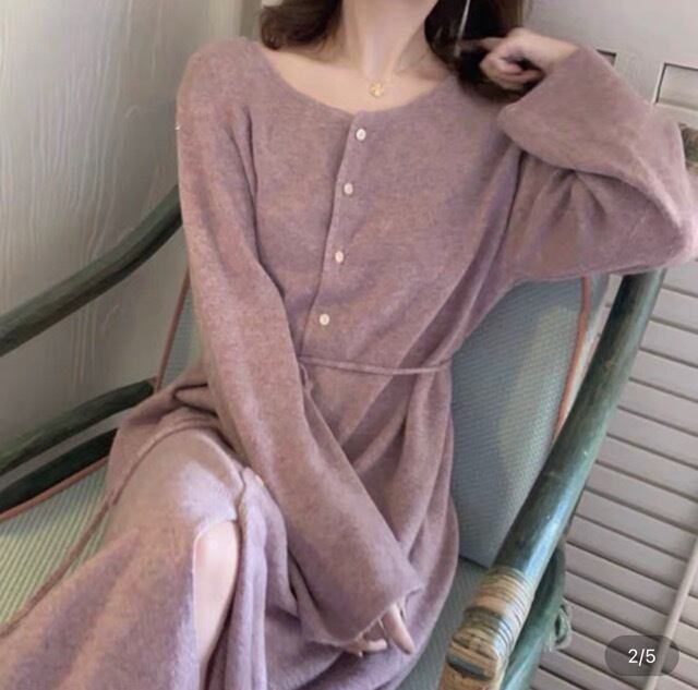 くすみカラーが可愛いラウンドネックのワンピースです。