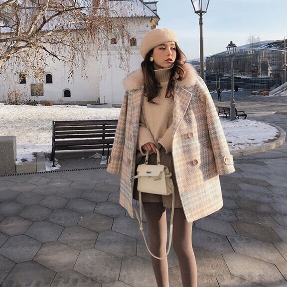 《入荷待ち》大きいサイズ 小さいサイズ レディース アウター チェスター コート チェック柄 ファー ミドル丈 きれいめ 清楚 フェミニン 大人可愛い 秋 冬 かわ大 かわ小