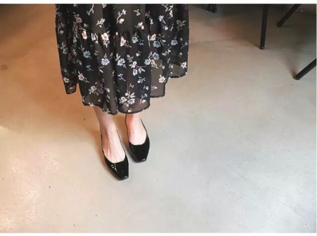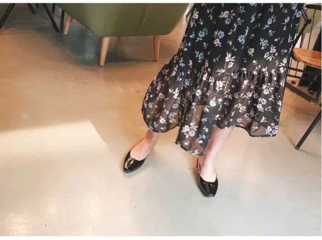 ブラックの軽やかな生地が歩く度に揺れ、大人可愛い。