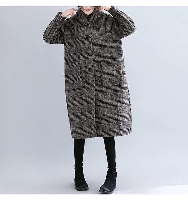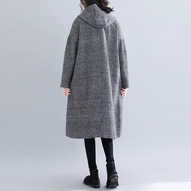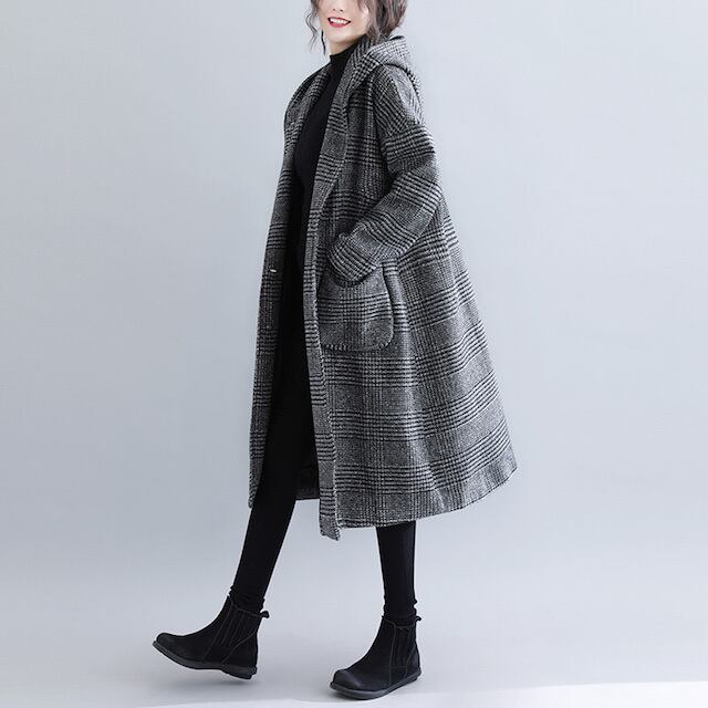≪入荷待ち≫全2色 大きいサイズ レディース ノーカラー チェスター コート チェック フード 羽織 シンプル ロング 大人可愛い アウター ジャケット コート かわ大