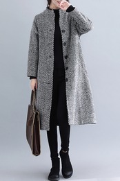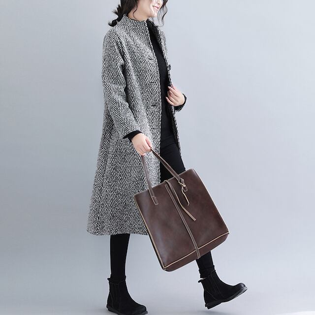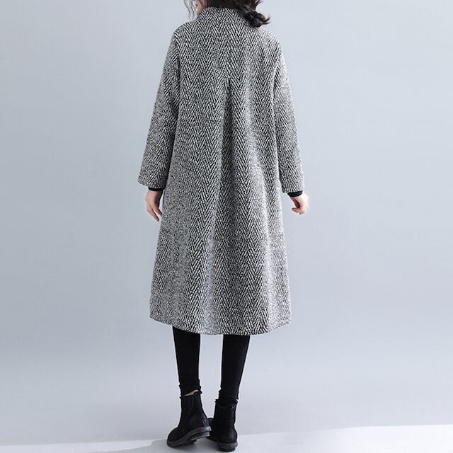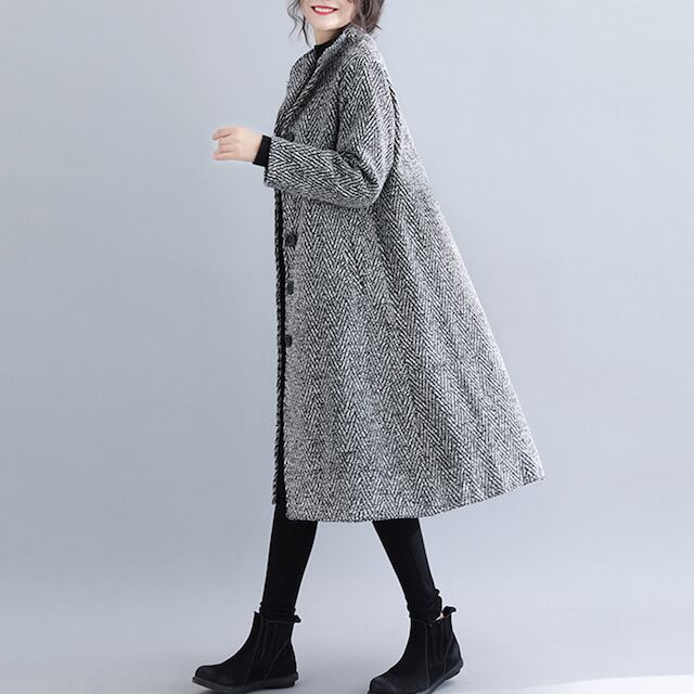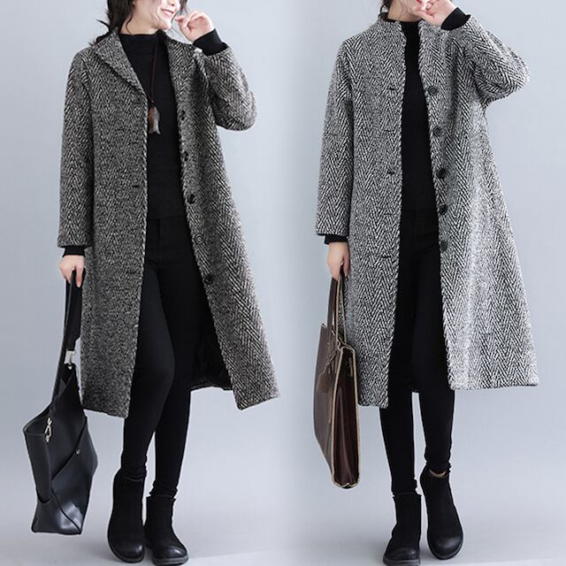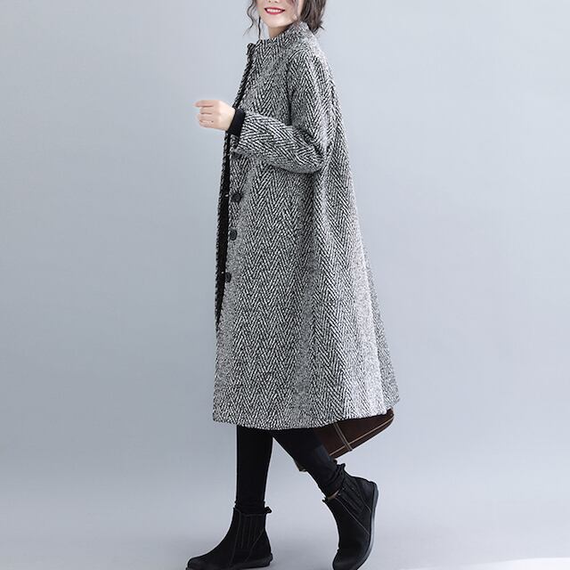 大きいサイズ レディース ノーカラー パターン コート ミドル丈 ウール 羽織 シンプル ロング 大人可愛い アウター ジャケット コート かわ大