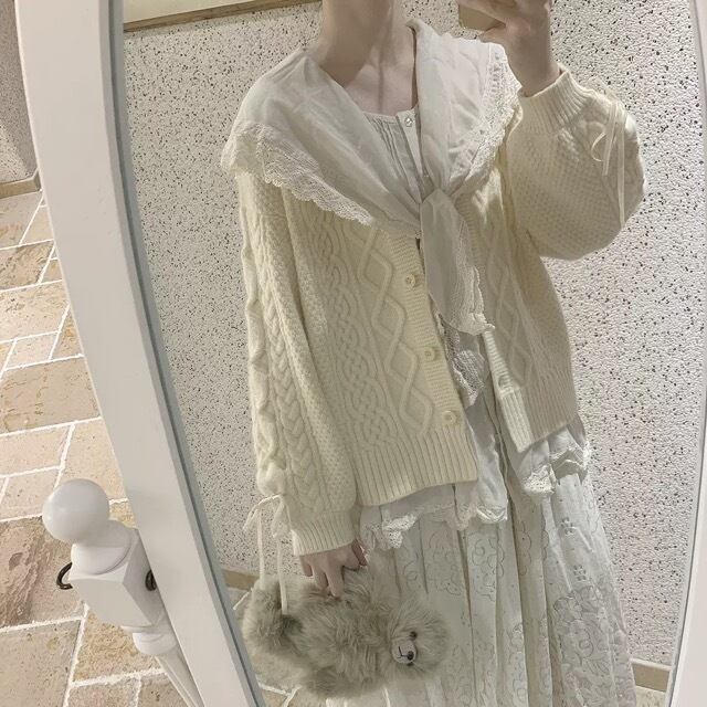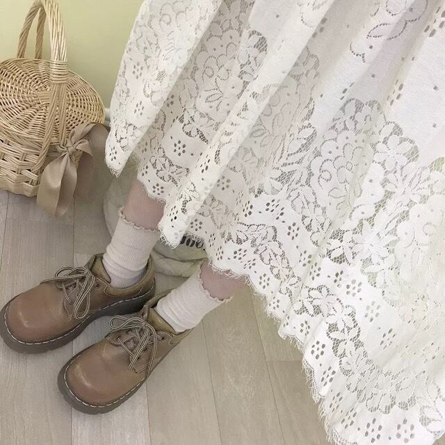 《再入荷》ミディ丈 ガーリー 透かし編み スカート 森ガール キュート ナチュ可愛 大人