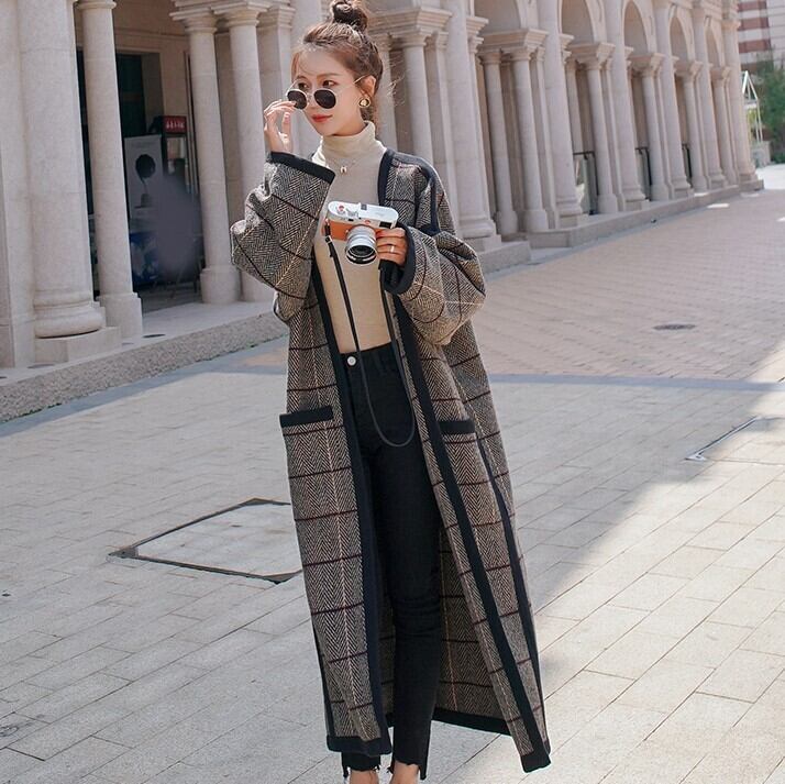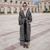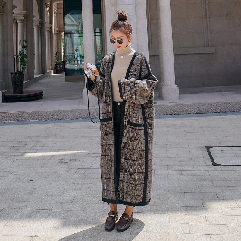 《入荷待ち》大きいサイズ 小さいサイズ レディース アウター ノーカラー ガウン コート カーディガン 羽織 チェック柄 ステッチ 切替 こなれ マキシ丈 ロング丈 ウエストマーク オーバーサイズ 大人可愛い きれいめ 秋 冬 かわ大 かわ小