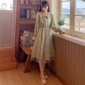 首元のリボンとフレア袖がリッチ感をプラスし、