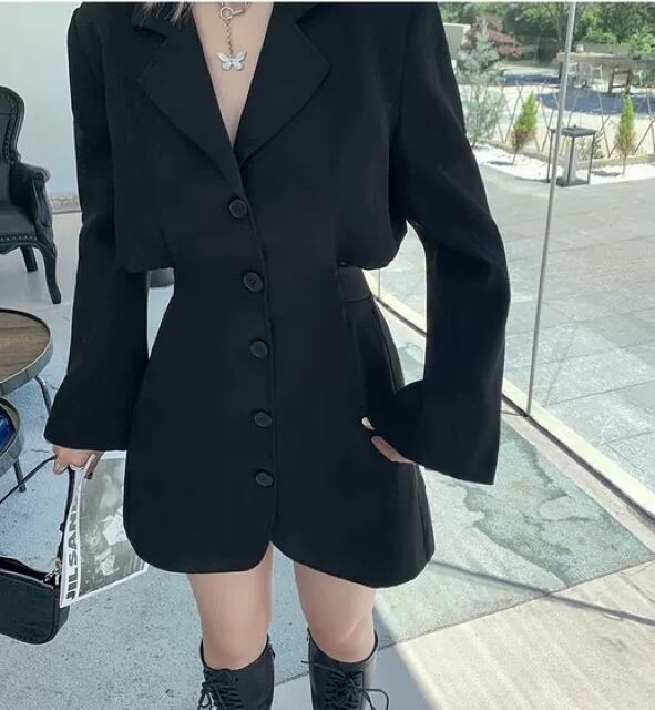 大きいサイズ サイドスリット 韓国発 ワンピース 個性的 ダブルブレスト 抜け感 スリットカフス キュロットパンツ アグレッシブ セクシー