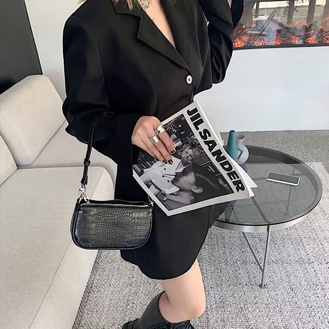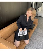 シックにキマるダブルブレストと、抜け感のあるスリットカフスでカジュアル過ぎず大人っぽい印象を演出。