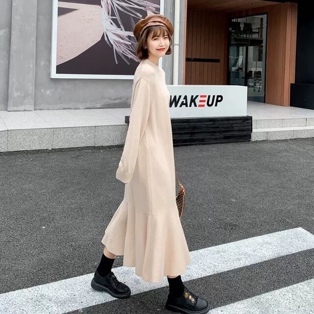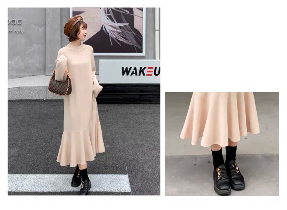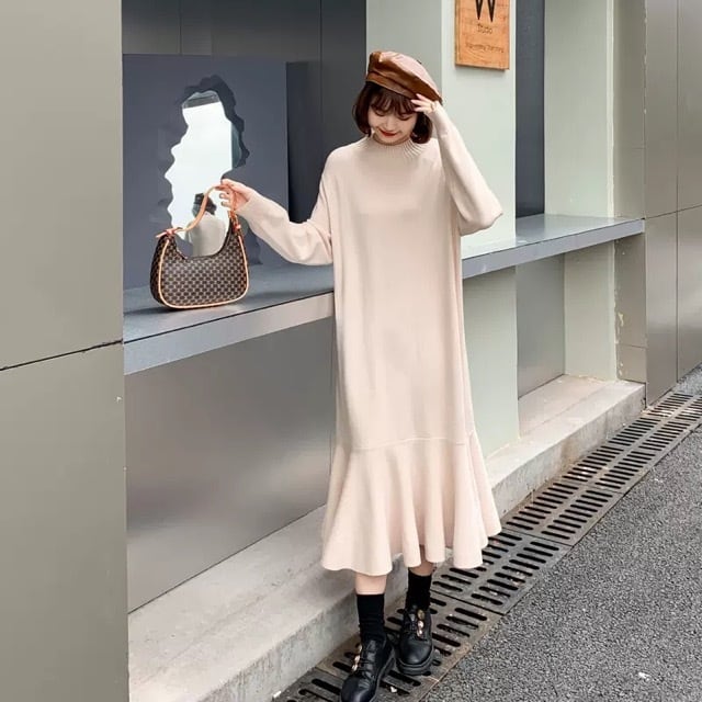 これからの季節に嬉しいニット素材のロング丈ワンピース。