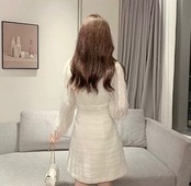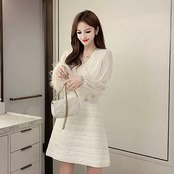 長袖部分と胴体の部分が異素材でMIXされたワンピース。