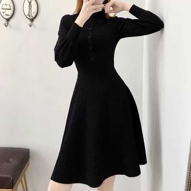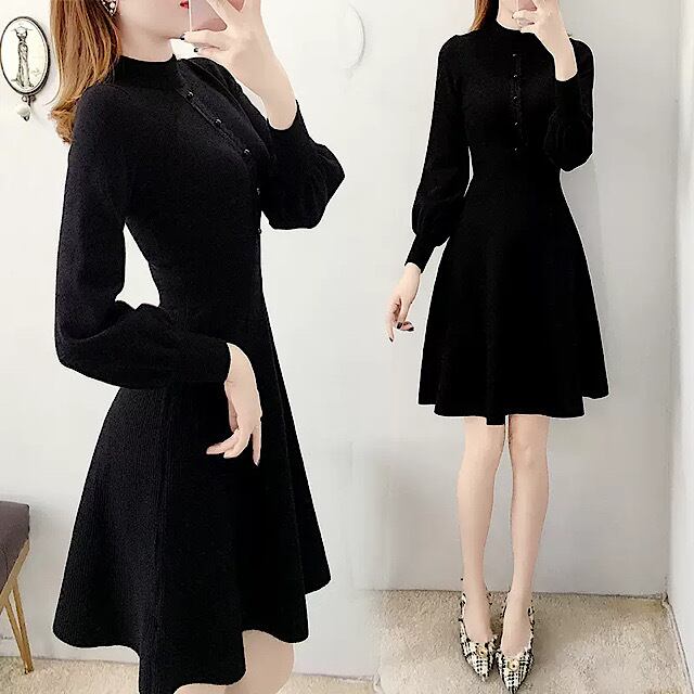 《入荷待ち》大きいサイズ レディース ワンピース 大人可愛い ブラック ワントーン シック シンプルデザイン ラウンドネック キャンディ袖 オケージョン