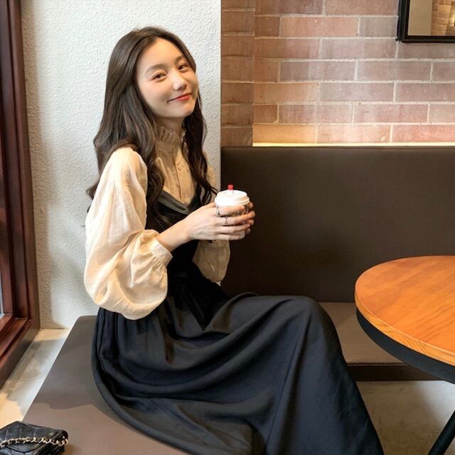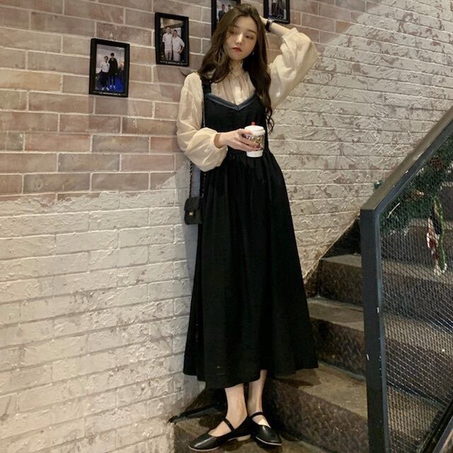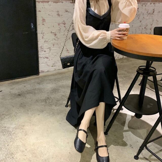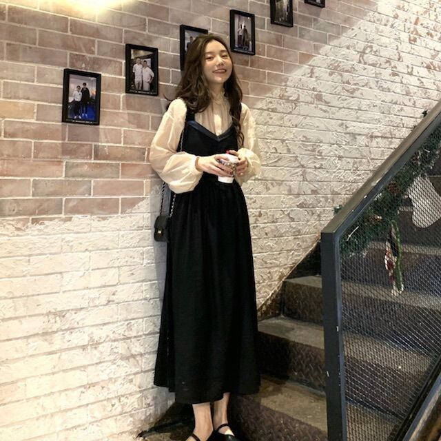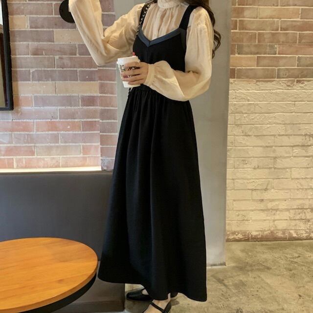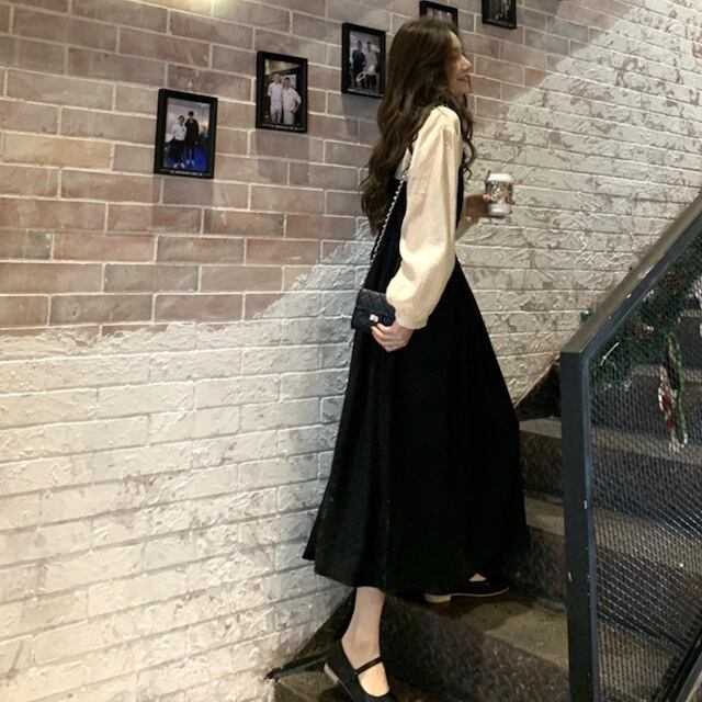 《入荷待ち》 大きいサイズ セットアップ ワンピース ロング丈 くるぶし丈 ブラウス シャツ フリル カジュアル ガーリー 韓国風 通学 秋 冬 2020秋 2020冬 夢かわ