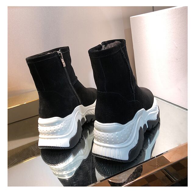 《入荷待ち》 レディース ショートブーツ スウェード 厚底 フラット カジュアル スポーティ モード ボア シンプル メンズライク トレ定