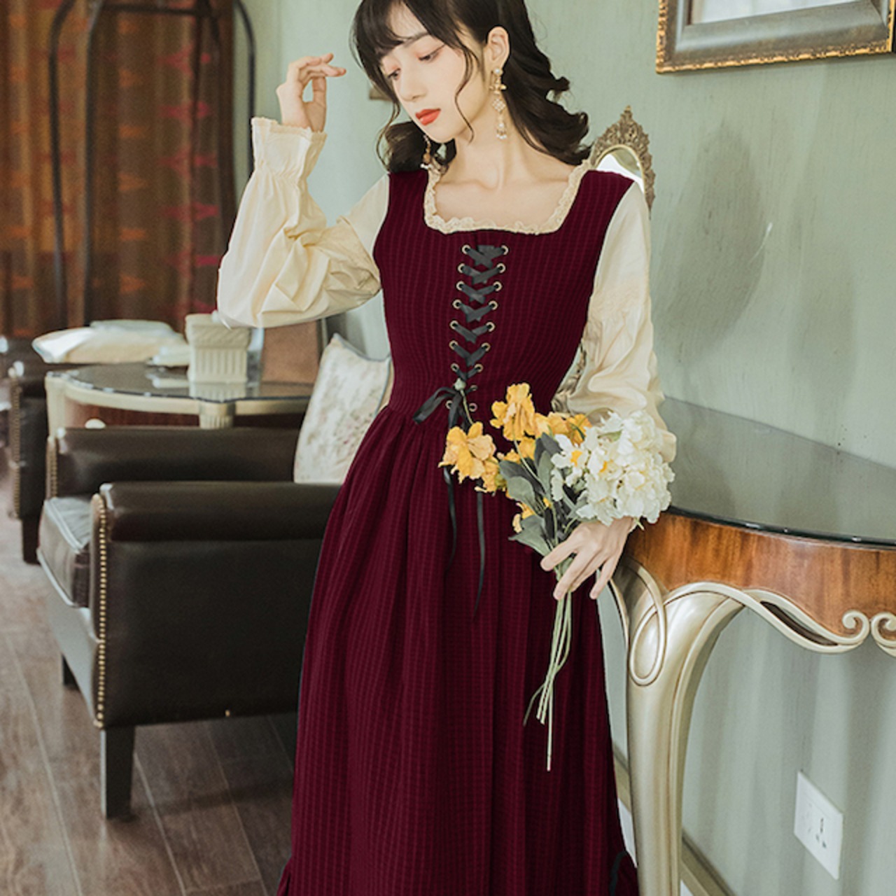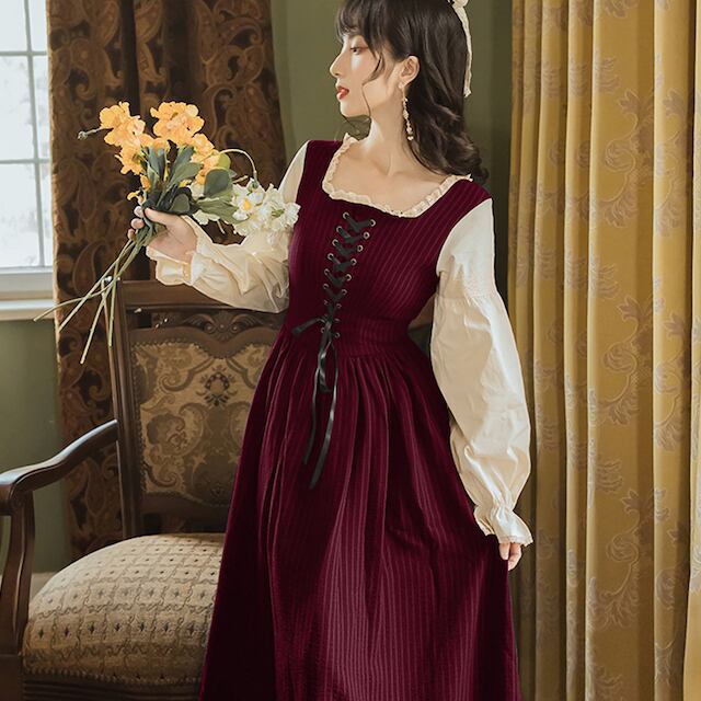 即納 数量限定 在庫あるだけ セール 超特価 全2色 大きいサイズ ワンピース 重ね着風 清楚 上品 ミドル丈 ミモレ丈 クラシカル フェミニン リボン フリル 着痩せ 秋 冬 2020秋 2020冬 夢かわ