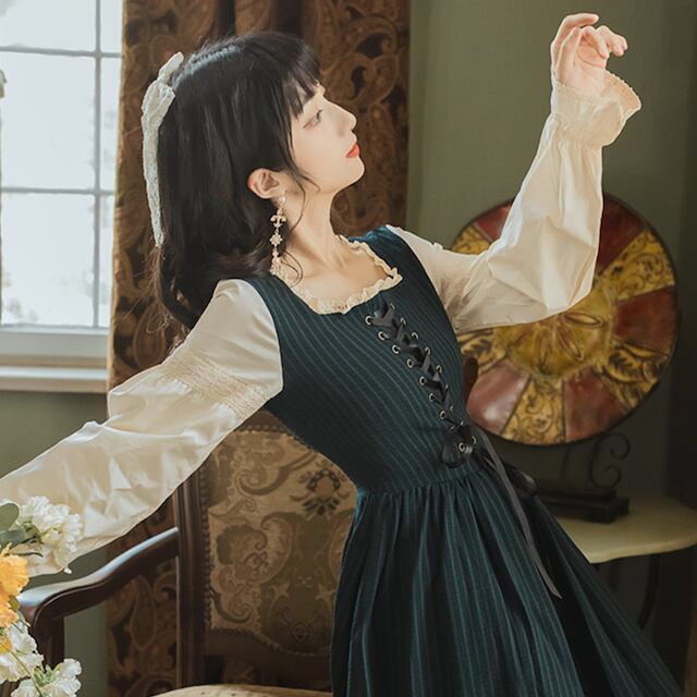 襟のフリルや胸元のリボンがドレスのように上品です♪